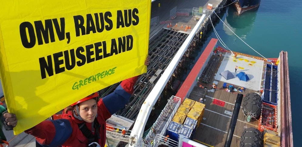 Auch eine österreichische Aktivistin ist an dem Protest beteiligt. Der Mineralölkonzern plant in den nächsten Wochen gefährliche Öl- und Gasbohrungen in den neuseeländischen Gewässern. Greenpeace fordert von der OMV, die neuen Bohrpläne aufzugeben.