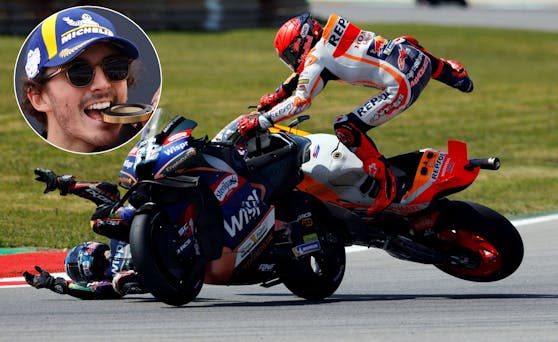 Sechsfach-Weltmeister Marc Marquez schoss bei seinem Sturz in Portimao Jorge Martin und Miguel Oliveira ab. Der MotoGP-Star bremste zu spät und verletzte sich beim Crash selbst. Er war bereits am Sonntagnachmittag im Autodromo Internacional do Algarve mit eingegipster rechter Hand zu sehen.