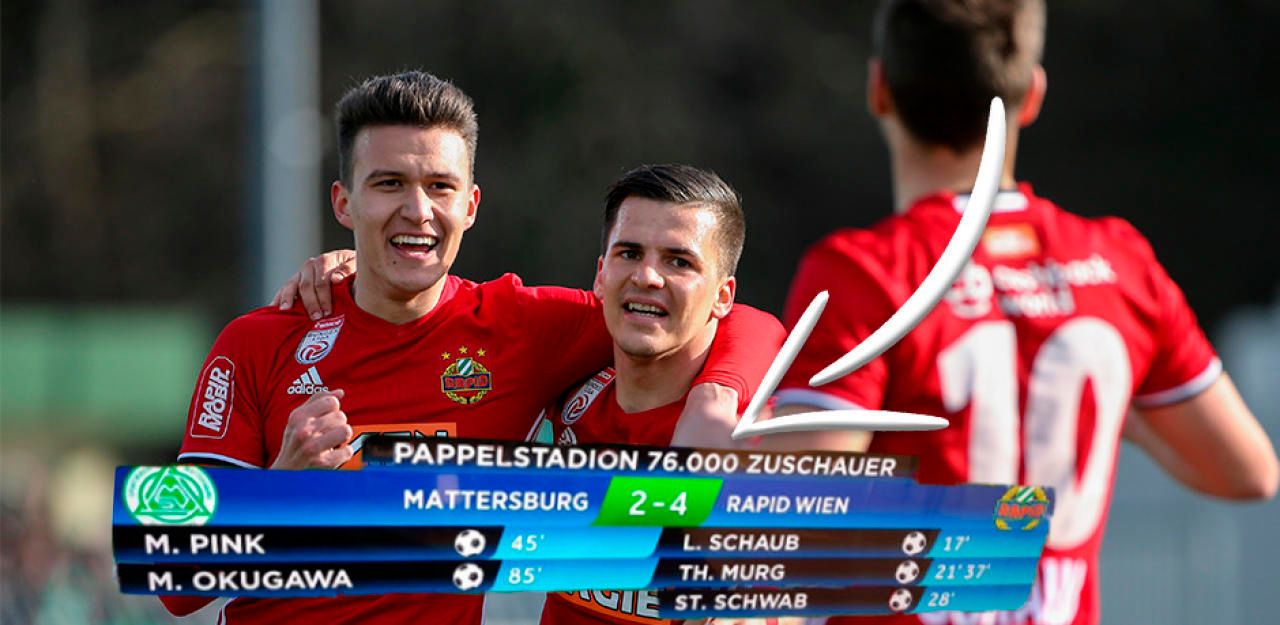 Rapid ist unbestritten der Zuschauer-Magnet in der österreichischen Bundesliga. Die Besucher-Anzahl, die der ORF nach dem 4:2-Sieg in Mattersburg einblendete, ist bei aller Fan-Liebe zu den Grün-Weißen jedoch utopisch. Demnach sahen 76.000 Zuschauer das Match vor Ort im Pappelstadion.