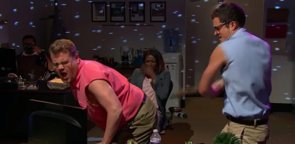 Das "Anmachen" haben die IT-Experten Corden und Bloom (40) allerdings etwas zu sehr ernst genommen und legen für dem Computer eine heiße Show hin.