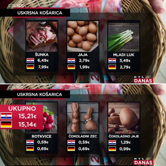 Eine kroatischsprachige Kundin meinte gegenüber "RTL" in einem Münchner Supermarkt: "Früher konnte man für 50 Euro ordentlich einkaufen – das geht heute nicht mehr. Für den selben Einkauf braucht es heute etwa 70 Euro." Viele würden deshalb Lebensmittel in den Balkan-Urlaub mitnehmen, erzählt die Frau. Das Fazit des Preis-Vergleichs: Derselbe Einkauf ist in Kroatien um sieben Cent teurer als in Deutschland.