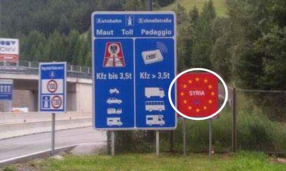 Unbekannte sorgen am Grenzübergang Brenner für Aufregung: In der Nacht auf Freitag wurde auf der Brennerautobahn in Fahrtrichtung Innsbruck das EU-/Europagrenzzeichen mit der Aufschrift Österreich mit einer Folie mit der Aufschrift "Syria" überklebt. Auch die Tafel in die andere Fahrtrichtung wurde beschädigt.