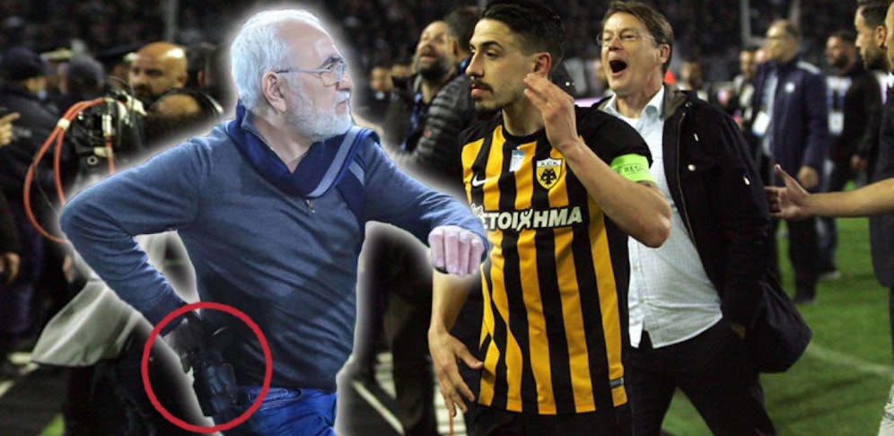Ivan Savvidis, Präsident von PAOK Saloniki, stürmte gegen AEK Athen mit einer Pistole den Platz. Grund: ein Fehlpfiff des Schiris. Jetzt gibt es neue Details.