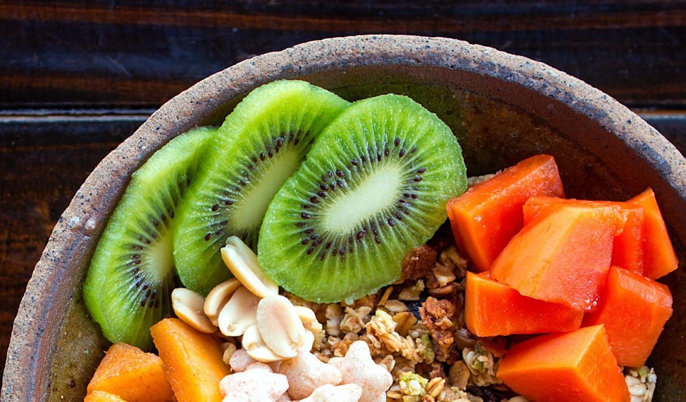Fettarmer und vitaminreicher Start in den Tag. Die komplexen Kohlenhydrate halten lange satt, und die exotischen Früchte liefern zusätzlich Mineral- und sekundäre Pflanzenstoffe.