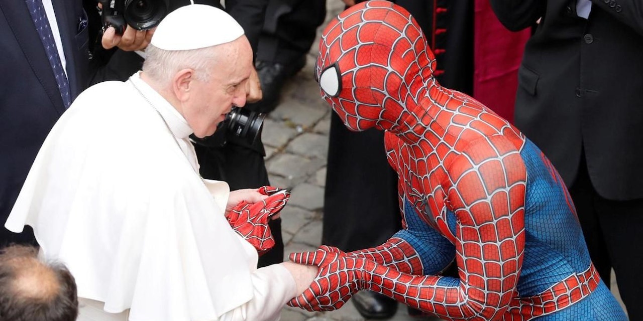 Papst Franziskus hat einem Mann im Spiderman-Kostüm die Hand gereicht und damit am Mittwoch für Aufmerksamkeit gesorgt. Der Mann im Dress des Comic-Helden habe bei der Generalaudienz des katholischen Kirchenoberhaupts im Vatikan viele Blicke auf sich gezogen, berichteten italienische Medien.