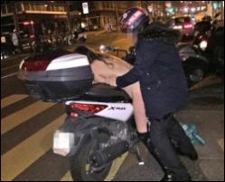 Ein komplett bekleideter und behelmter Mann vergnügte sich mit einer nackten Frau auf seinem Roller. Ihre Kleider und Handtasche lagen daneben auf dem Boden. "In der Nähe waren viele Leute, aber niemand sagte etwas. Ich dachte nicht, dass ich so etwas jemals zu Gesicht bekäme", so der Augenzeuge. "Das ist einfach nur beschämend!"