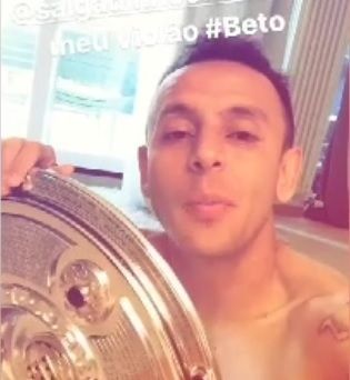 Auch im sieben Uhr früh postete der Brasilianer noch weiter auf Instagram. Sichtlich angeheitert und oben ohne posierte er mit dem Meisterteller: