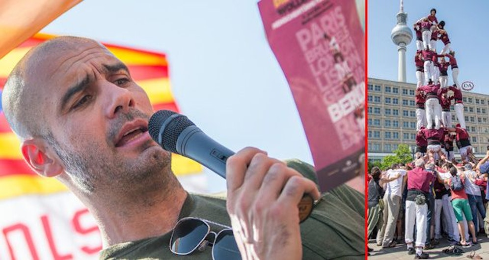 Pepe Guardiola, der ehemalige Barca- und nunmehrige Bayern-Trainer, ist für das Selbstbestimmungsrecht der Katalanen auf die Straße gegangen. Bei einer Kundgebung samt traditioneller "Menschentürme" forderte Guardiola in Berlin ein von Spanien unabhängiges Katalonien.