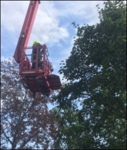 Und tatsächlich: Beim Eintreffen der Florianis vor Ort, saß tatsächlich ein stattlicher, weißer Pfau mitten in einer Baumkrone im Wohngebiet. Das Tier sowie einer seiner Artgenossen waren Neo-Pfaubesitzern aus einem Verschlag in deren Garten entwischt, flogen – aufgrund einer noch nicht gekürzten Flugfeder – Richtung Schlosspark. Einer der beiden machte schließlich Pause im Baum.