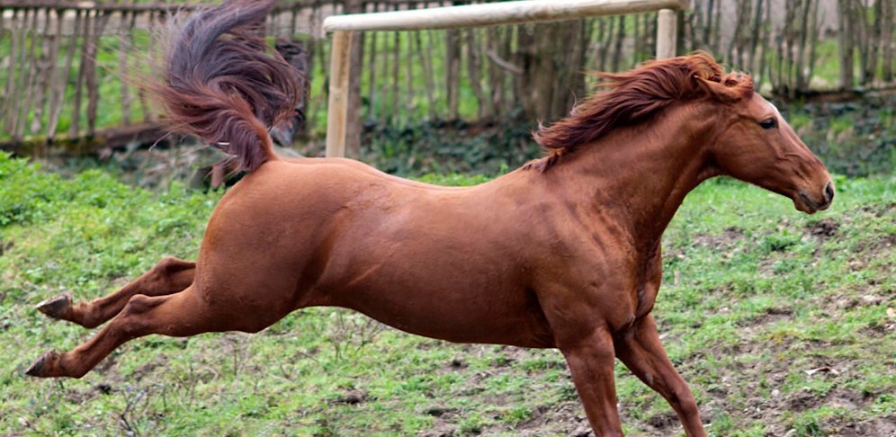 Die 17-jährige Reiterin versuchte noch, sich auf dem Pferd zu halten, musste aber schnell feststellen: Um sich zu retten und Schlimmeres zu vermeiden, muss sie springen.