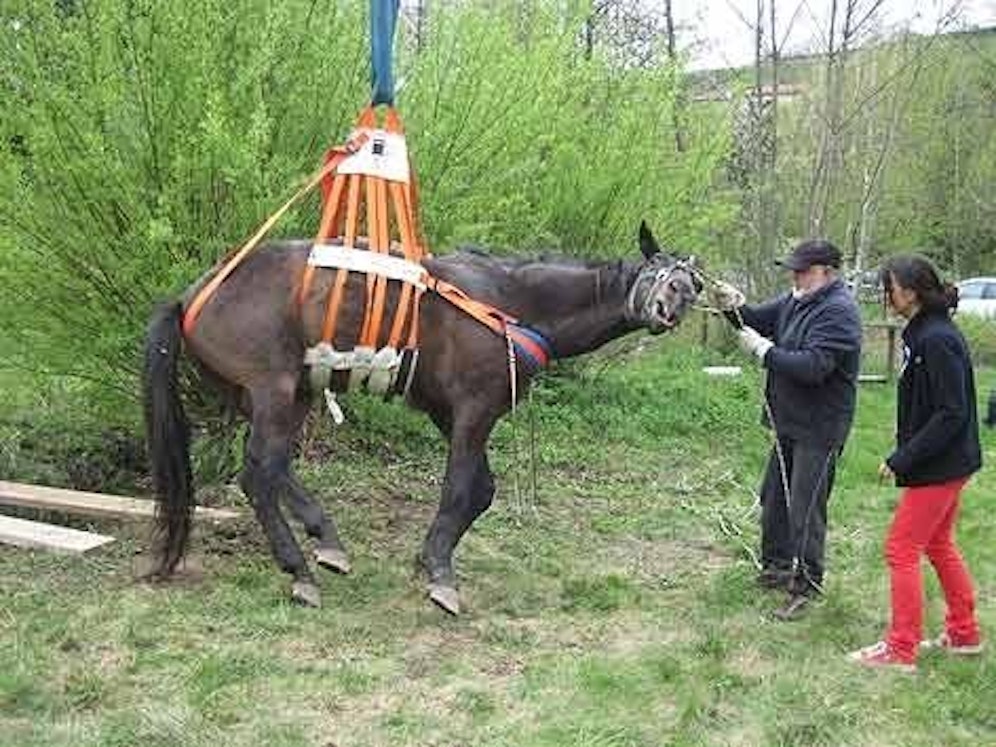"Blacky", das 29 Jahre alte Tier, konnte sich nach seinem Sturz nicht mehr aus eigener Kraft aus dem Bachbett am Stadtrand von Graz befreien, berichtet der ORF. Auch alle Versuche des Besitzers, dem Pferd zu helfen, scheiterten.
