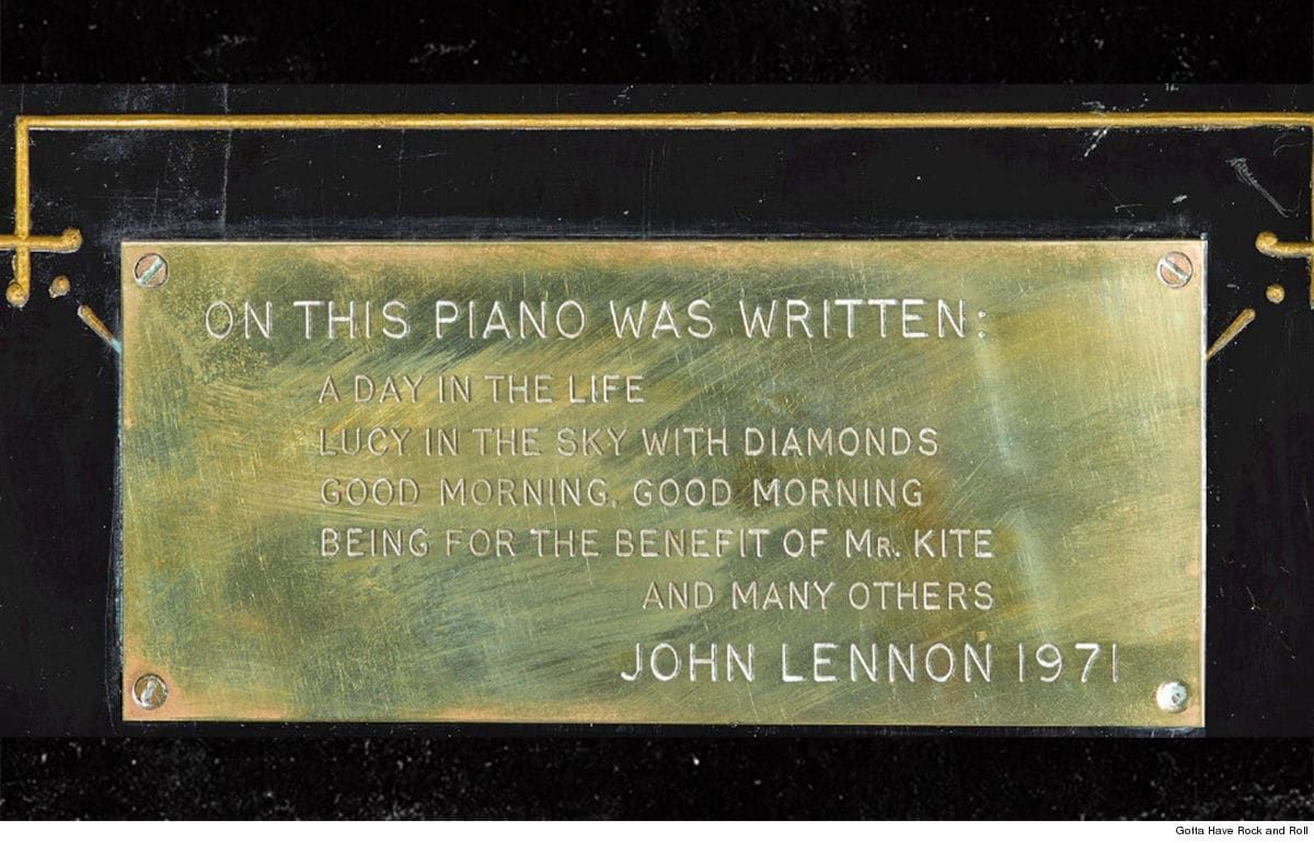 Das Instrument aus der Produktion von John Broadwood & Sons stand in Lennons Anwesen im englischen Kenwood und ist mit einer Plakette versehen, die auf seine popkulturelle Bedeutung verweist. "Auf diesem Piano wurde[n] geschrieben: A Day in the Life[,] Lucy in the Sky with Diamonds[,] Good Morning, Good Morning[,] Being for the Benefit of Mr. Kite und viele andere[.] John Lennon 1971".