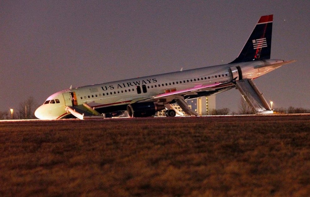 Wie bei Reifenplatzern üblich, brach der Pilot der US Airways Maschine nach Fort Lauderdale den Start ab. Beim Wiederaufsetzen dürfte enorme Kräfte auf das Fahrwerk gewirkt haben. Augenzeugen beschrieben, dass das Flugzeug bei der Landung mindestens einmal vom Boden abprallte. Schließlich brach das Fahrwerk zusammen, die Maschine kippte nach vorne und blieb auf dem Bug liegen.