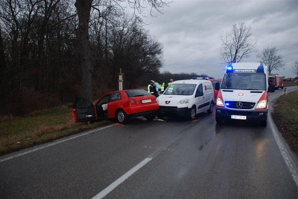 Das Auto der Familie kam auf der L 154 zwischen Teesdorf und Günselsdorf vermutlich auf Grunde der regennassen Fahrbahn ins Schleudern und prallte gegen einen Baum. Zwei weitere Pkw waren an dem Unfall beteiligt.