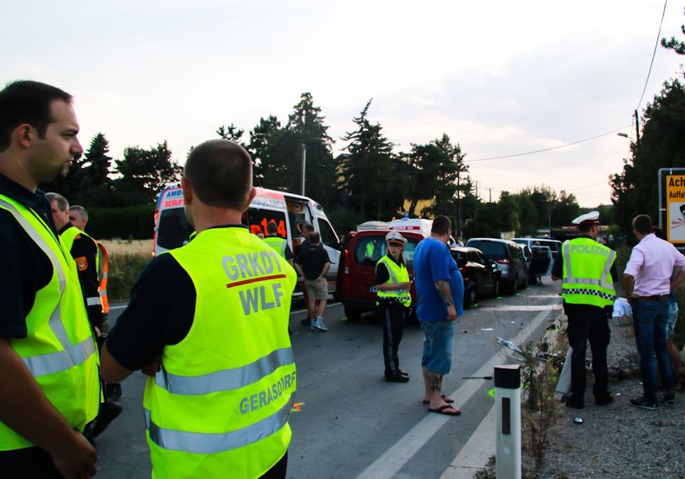 Vor der S2-Bahnunterführung in Gerasdorf (Wien-Umgebung) kam es am Donnerstagabend zu einem schweren Unfall. Ein Lenker bremste bei "Rot" abrupt ab, zwei nachfolgende Autos krachten in den ersten Wagen.