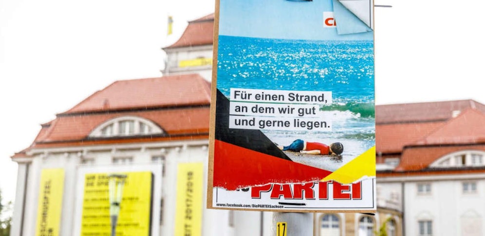 Der Vorsitzende der Satire-Partei Martin Sonneborn weist die Vorwürfe aber von sich: "Das passt natürlich in die aktuelle Situation, Schicksal und Tod von Flüchtlingen aus Wahlkampf und Öffentlichkeit herauszuhalten. Aber im Gegensatz zur großen Koalition wollen wir eine Diskussion über das anhaltende große Sterben. Die Kritik, die uns im Netz entgegengebracht wird, bitte ich, ans Kanzleramt zu adressieren." (slo)