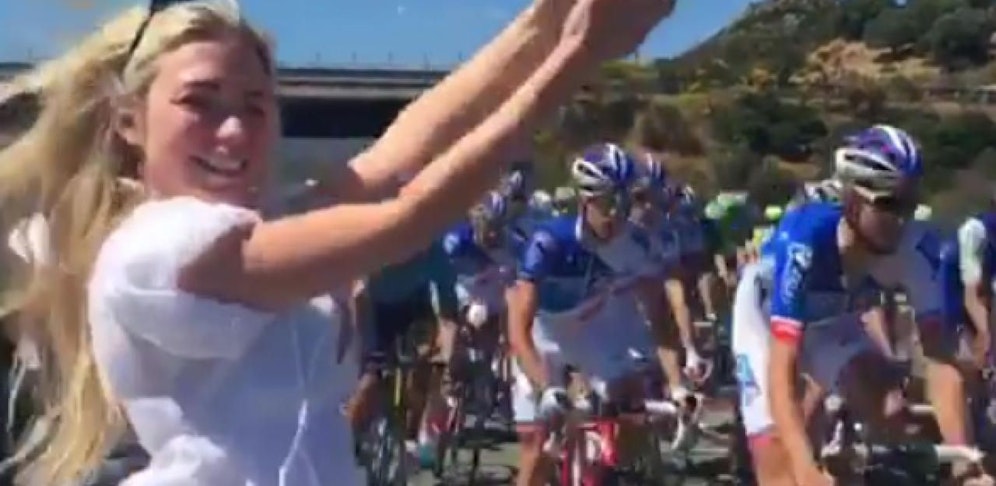 Playboy-Model April Summers wollte ihre Sportbegeisterung unter Beweis stellen und die Radler des Giro D'Italia anfeuern. Die Aktion wurde fast zur Katastrophe.