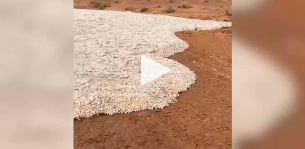 Extreme Wetterbedingungen mit Eisregen und Schnee haben zu Eisfluten in den Wüsten im Norden Saudi-Arabiens, im Iran und in den Vereinigten Arabischen Emiraten geführt. Meteorologen zeigten sich ab dem Temperatursturz überrascht.