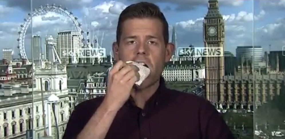 Bei einem Interview mit dem TV-Sender Sky News machte der Interviewer ihn auf den Tweet aufmerksam und fragte ihn, ob er zu seinem Wort stehe. Und Goodwin stand dazu, riss live auf Sendung einige Seiten heraus und verschlang sie.