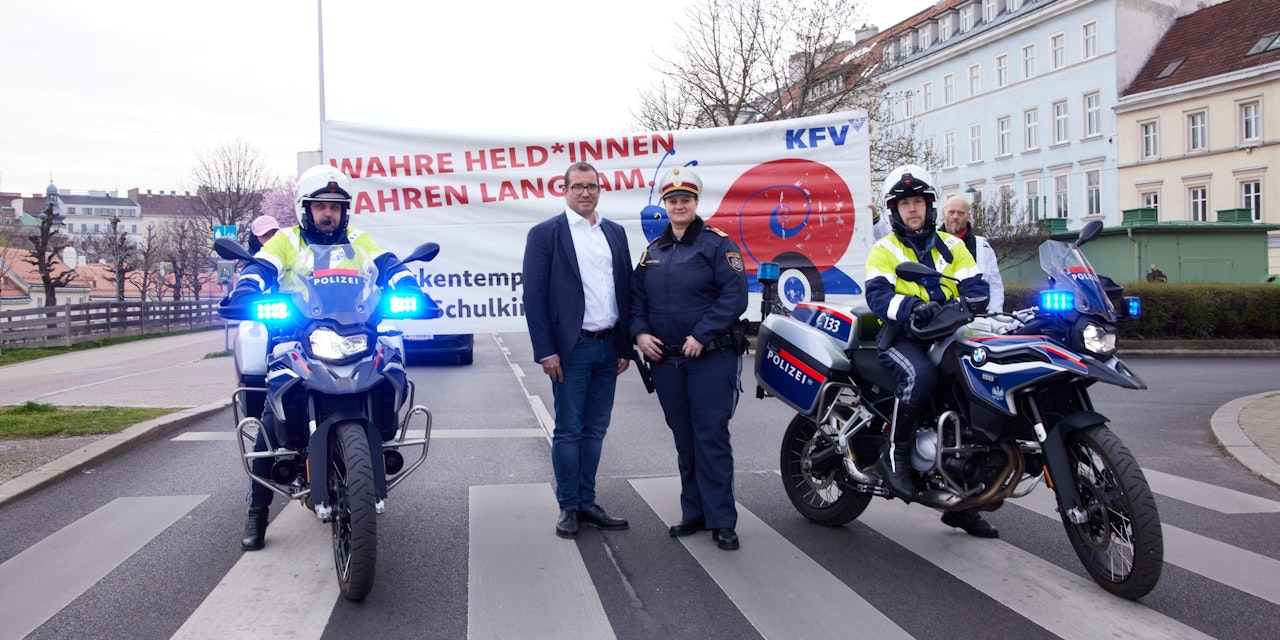 Mit der Plakatkampagne "Wahre Held*innen fahren langsam" unterstützte das KFV nun in Wien-Leopoldstadt die "Aktion scharf" und erinnerte an die Einhaltung des Tempolimits. Denn jährlich verunglücken 470 Schulpflichtige im Alter zwischen sechs und 15 Jahren auf dem Schulweg, wobei überhöhte Geschwindigkeit die häufigste Unfallursache ist. "Leider sind auch Schutzwege kein Garant für das sichere Queren einer Straße. Alle 49 Stunden verunglückt ein Kind in Österreich auf ungeregelten Schutzwegen. Verkehrssicherheit ist eine permanente Aufgabe und Herausforderung, zu der auch effektive Bewusstseinsbildung gehört. Mit unserer Aktion möchten wir erhöhtes Bewusstsein für diese Problematik schaffen", so Christoph Feymann, Leiter des Bereichs Kommunikation im KFV.