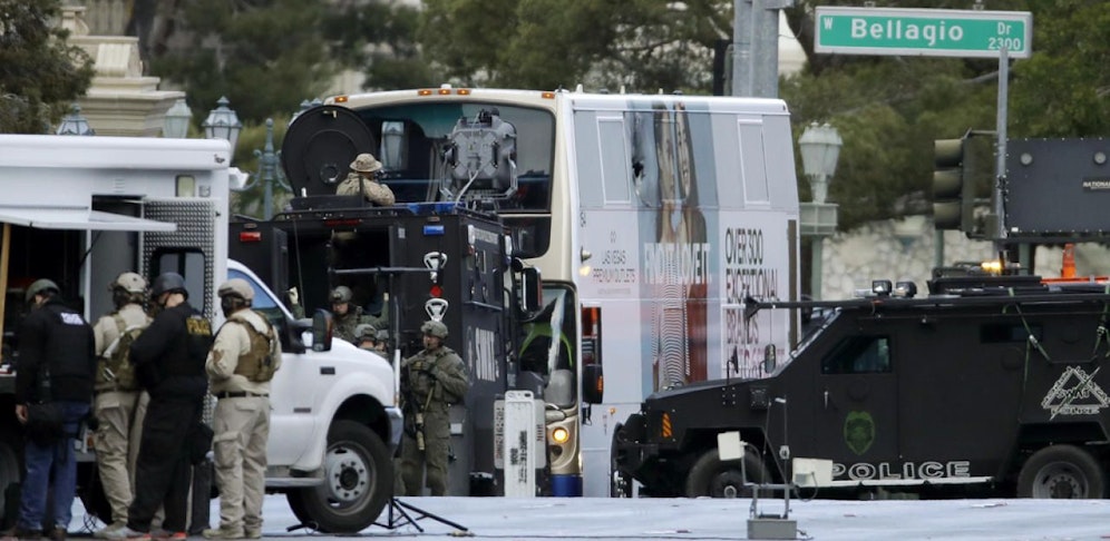 Ein psychisch Kranker hat das Feuer in einem Bus am Las Vegas Strip eröffnet und einen Mann getötet. Der Verdächtige verbarrikadierte sich in dem Fahrzeug.