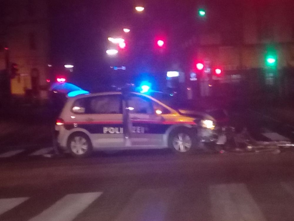 Bei einer Blaulicht-Fahrt der Wiener Polizei hat es in der Nacht auf Freitag gekracht. Ein Polizist und ein Taxifahrer wurden verletzt, kamen aber glücklicherweise mit leichten Blessuren davon.