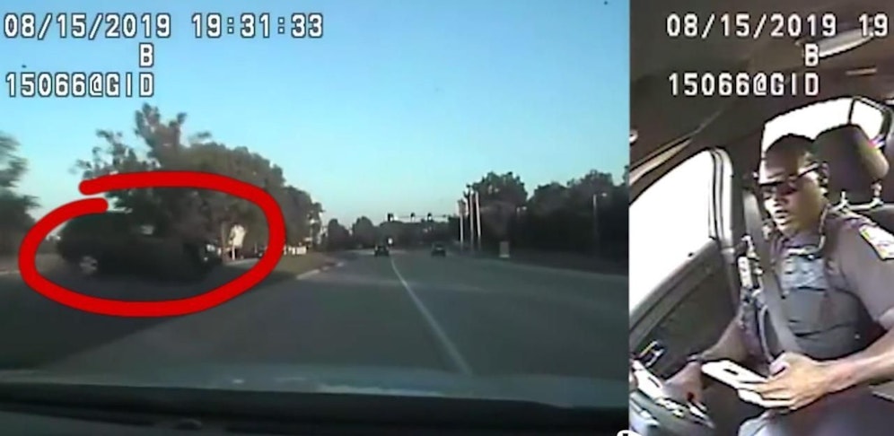 Die örtliche Polizei veröffentlichte ein Video, auf dem der Beamte die ganze Zeit auf seinem Handy tippte. Offenbar verschickte er gerade eine wichtige Nachricht, die einfach nicht warten konnte.
