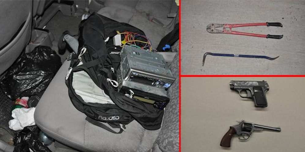 Der Verdächtige floh in einem schwarzen Mazda. Polizeistreifen konnten das Fluchtfahrzeug in der Nähe des Tatorts anhalten und den mutmaßlichen Einbrecher festnehmen. Im Fahrzeug des Beschuldigten fanden die Beamten zwei Autoradios, Einbruchswerkzeug, einen Gasrevolver und eine Schreckschusspistole. Der Mann ist in Haft.