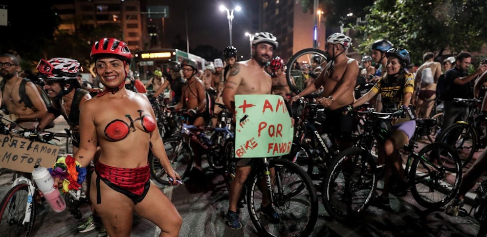 Wohin man schaut, nackte Körper auf Rädern! Am Wochenende herrschte in Sao Paolo Nackedei-Alarm: Tausende Brasilianer strampelten spärlich bekleidet.