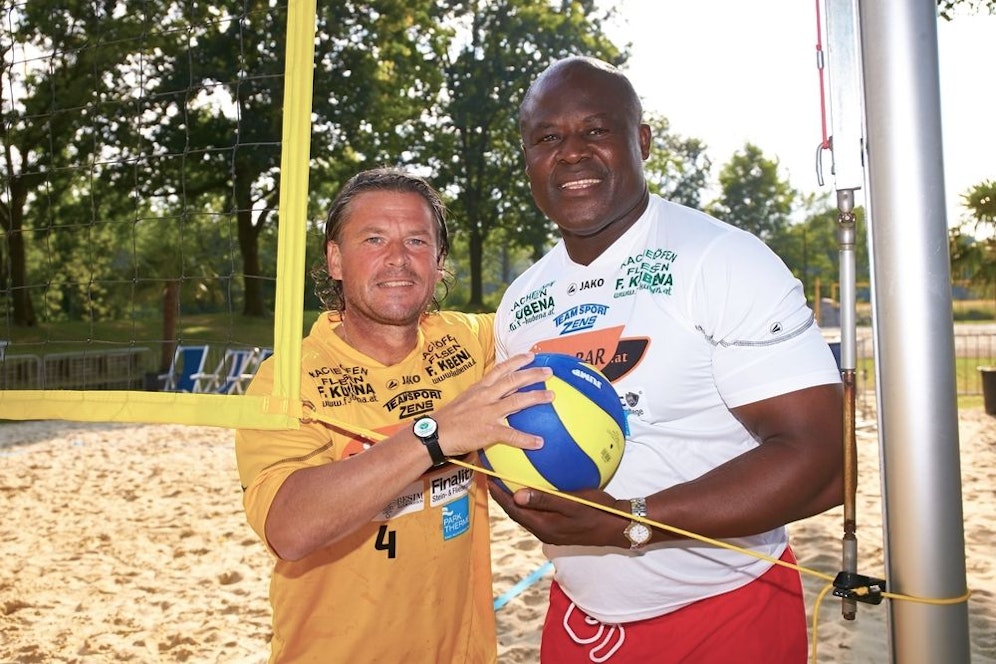 Er ist ein Model und sieht gut aus, aber beim Bauchvergleich hat Beau Werner Schreyer (43) gegen Ex-Skifahrer Hans Enn (55) keine Chance. Lustig hatte es Sonntagnachmittag bei der Charity-Promi-Beachvolleyballtrophy in der Therme Bad Radkersburg auch "Dancing Star der Herzen" Biko Botowamungo, der abends zuvor bis vier Uhr früh im Vitalhotel feierte.