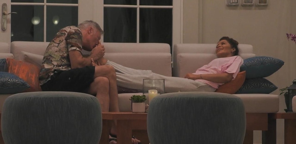 Doch die Zeiten sind vorbei! Ans Aufgeben denkt Ronald trotzdem nicht. Er versucht bei Janine Pink zu landen. Drei Stunden lang massiert er ihr die Füße. Zwischendurch schnüffelt er auch an ihnen. "Du hast ausgesprochen süße Füße. Eigentlich ist das, was wir hier machen, schon ganz schön intim", erklärt er Janine. Währenddessen wandern seine Hände immer höher.