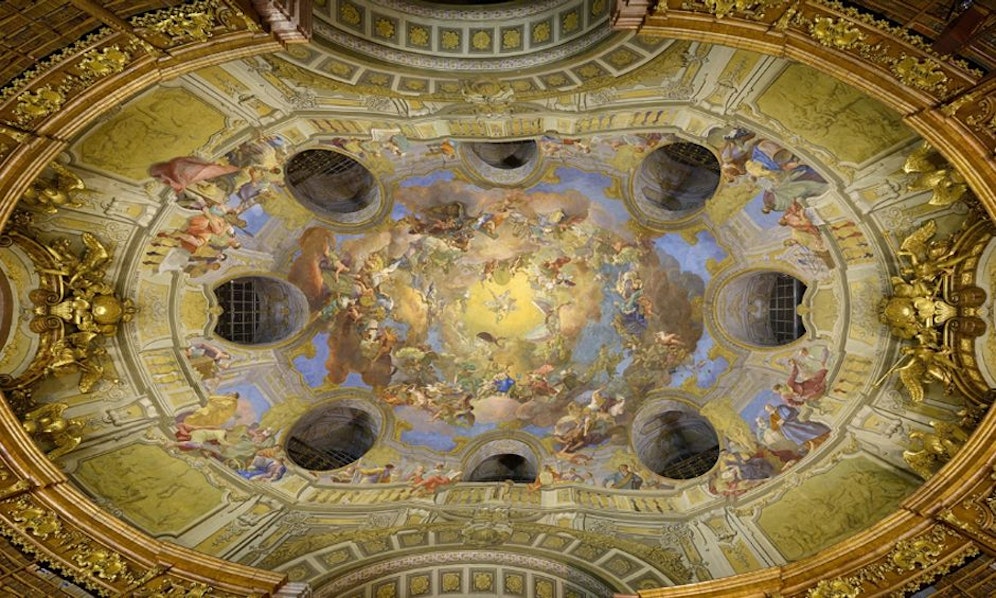 Im Rahmen der Kooperation von und der Österreichischen Nationalbibliothek können Kultur- und Literatur-Liebhaber erstmals online eine Gigapixel-Aufnahme des berühmten Deckenfreskos im Mitteloval bestaunen und bekommen zusätzlich noch Zugang zu 40 historischen Druckwerken, die im Original im Prunksaal aufbewahrt werden.