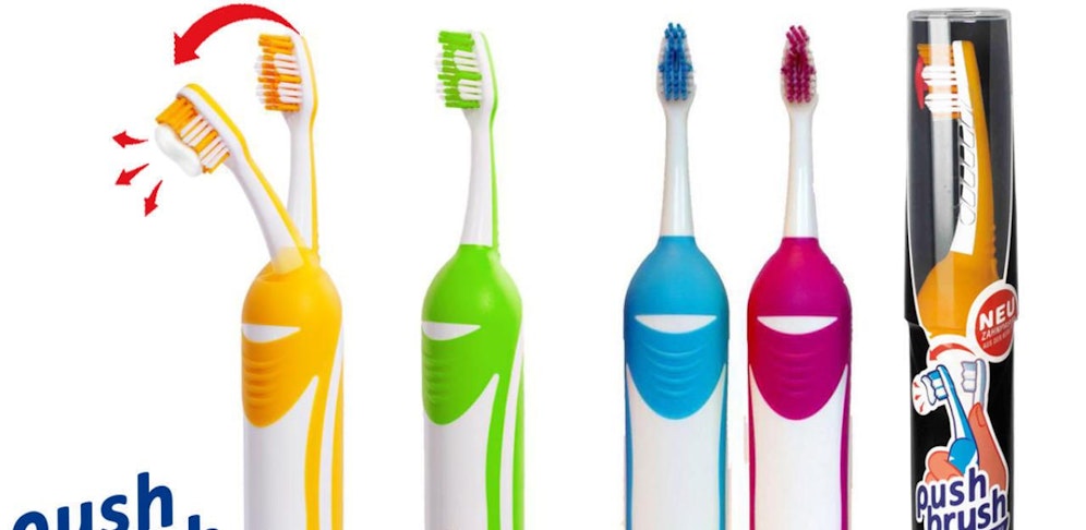 Die integrierte Zahnpasta mit einem Finger vollautomatisch auf die Borsten „pastern" und sofort Zähneputzen: Mit Push Brush gewinnst Du Lebenszeit! Weniger Müll. Ideal für die Reise. Kein Kleckern, kein Streit wegen offener Zahnpastatuben, nie mehr kompliziert hantieren. Produziert in einer hohen Qualität in Deutschland.