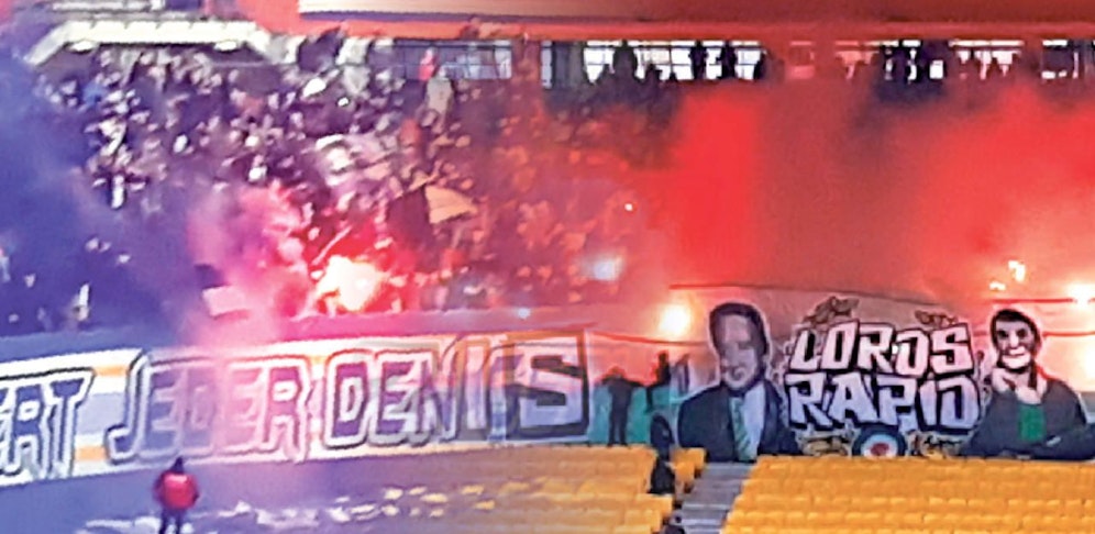 Derby-Zeit in Wien – und trotz spärlichem Besuch (knapp 16.000 Besucher) ging es im Wiener Ernst-Happel-Stadion ordentlich zur Sache. Erst starten die Rapid-Fans ihre Pyro-Show: "Strizzis & Ganoven" war in großen Lettern zu lesen, dann brannten die Grün-Weißen zahlreiche Bengalen ab.