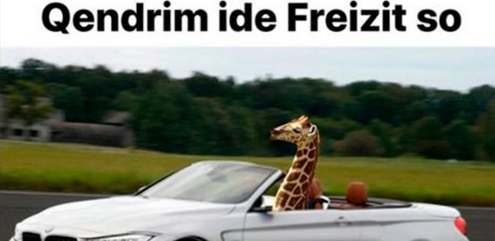 Angefangen hat es damit, dass der Basler Zoo die Geburt des Tieres auf der Plattform verkündete. Die Instagrammer Hoti und Nali von Swisscomedytv sahen, dass die Giraffe einen albanischen Namen hat und haben dazu aufgerufen, zu gratulieren: "Hajde perhajr" (Komm, gratulier auf Deutsch!).