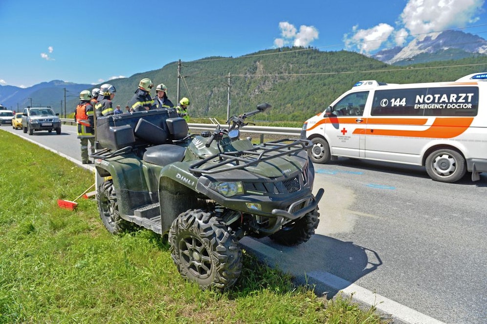 Der nachfolgende Quadlenker konnte nicht mehr rechtzeitig anhalten und prallte gegen das Heck des Pkw. Dabei überschlug sich der 65-jährige Mann und blieb verletzt auf der Straße liegen. Die Rettungskräfte brachten den Verletzten nach der Erstversorgung in das Krankenhaus Zams.