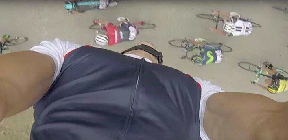 Mountainbiker Szymon Godziek wollte schon immer an der Polen-Rundfahrt teilnehmen. Diesen Traum hat er sich erfüllt. Nicht im Hauptfeld – sondern darüber! Ein Video zeigt den verrückten Stunt: Während Peter Sagan und Co. auf der letzten Etappe der Rundfahrt Richtung Ziel radelten, fuhren sie an einer von Godziek selbstgebauten Sprungschanze vorbei. In der Anfahrt – oder besser gesagt im Anflug – der Pole, der einen spektakulären Rückwärtssalto über die Rad-Profis zeigte.
