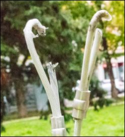 Unbekannte Täter haben einen Imbussatz und eine Zange abgezwickt, denn eigentlich sind die Werkzeuge mit einem soliden Stahlseil gesichert.