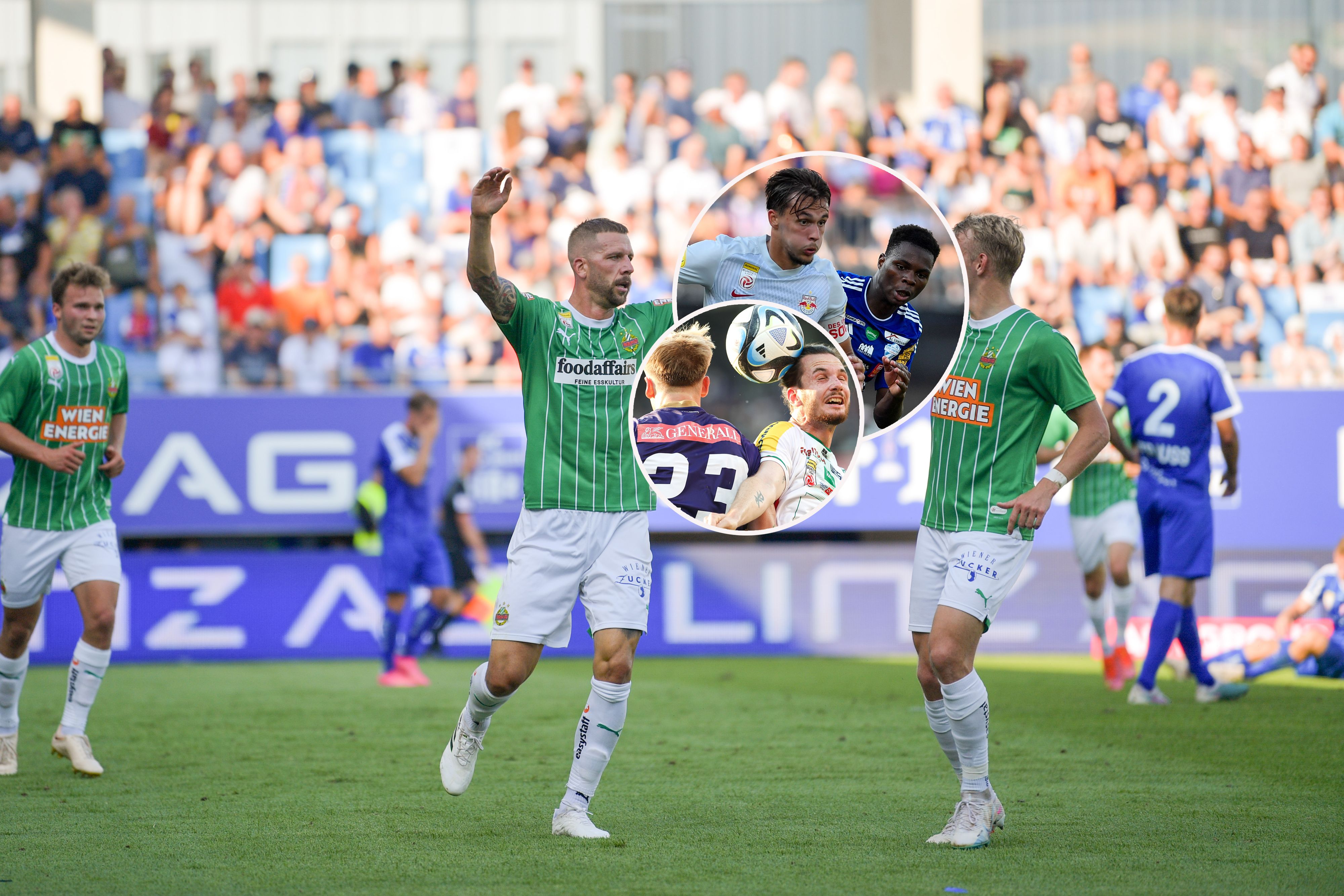 Die Hütteldorfer setzten sich am Sonntag auswärts bei Blau-Weiß Linz mit 5:1 durch. Kapitän Guido Burgstaller (12., 22.), Leo Querfeld (64.), Ante Bajic (79.) und Fally Mayulu (92./Elfer) trafen.