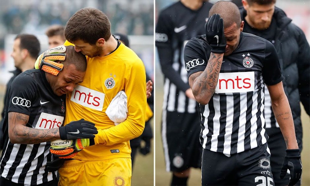 Nach dem Abpfiff war der Mittelfeldspieler total aufgelöst. Er gestikulierte in Richtung der Heimfans, Tränen liefen über seine Wangen und fielen auf den Rasen. "Ich konnte die Tränen nicht mehr zurückhalten, nachdem ich 90 Minuten lang rassistische Beleidigungen von den Tribünen ertragen musste", schilderte der Spieler, der von seinen Teamkollegen tröstend in die Arme genommen wurde.