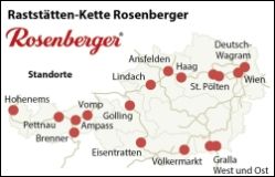 Österreichweit betreibt Rosenberger 16 Raststätten: In Wien, Deutsch-Wagram, St. Pölten, Haag (alle NÖ), in Gralla West und Ost (Stmk.), in Völkermarkt und Eisentratten (Ktn.), in Ansfelden und Lindach (OÖ), in Golling (Salzburg), Vomp, Ampass, Pettnau und am Brenner (Tirol) und in Hohenems (Vbg.).