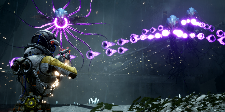 Die Kämpfe selbst sind spektakulär ausgefallen – und erinnern trotz Bombast-Effekten und superflüssig sowie detailreich animierten Gegnern an die Bullet-Hell-Games des Studios. Laserstrahlen und Plasmakugeln muss flink ausgewichen werden, Bewegungsmuster von Feinden und Bossen gilt es zu erkennen und immer muss im Blick bleiben, wie man die Flucht antreten kann. Nicht immer ist das allerdings möglich: Gibt es anfangs wenige und vor allem fernkämpfende Gegner, kommen von Biom zu Biom größere, schnellere und gefährliche Feinde hinzu, die dann oft auch in abgeschlossenen Arenen und Gruppen bekämpft werden müssen.