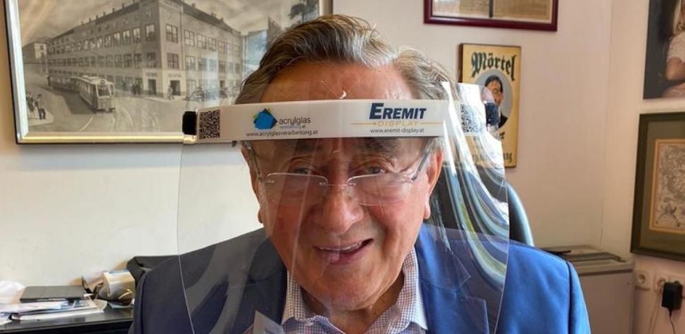 Richard Lugner, im 88. Lebensjahr stehender Shopping-Mall-Betreiber, gehört natürlich zur Corona-Risikogruppe. Er hat aber Sicherheitsmaßnahmen ergriffen, wie ein an "Heute" geschicktes Foto zeigt, arbeitet der Baumeister der Nation in seiner Lugner City nun mit Schutz.