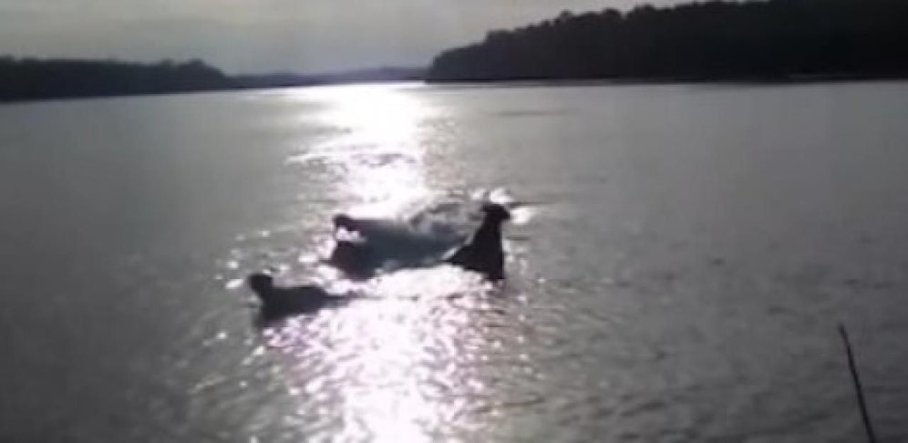 Wie auf einem YouTube-Video zu sehen ist, tauch plötzlich ein Krokodil im Wasser auf und geht auf die Hunde los. Während zwei der Hunde fliehen können, hört man den Hundehalter verzweifelt "Ben, raus hier!" schreien.