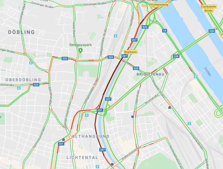 Betroffen waren die Heiligenstädter Lände bis zur Donauufer Autobahn (A22), Anschluss Prager Straße und Klosterneuburger Straße (B14).