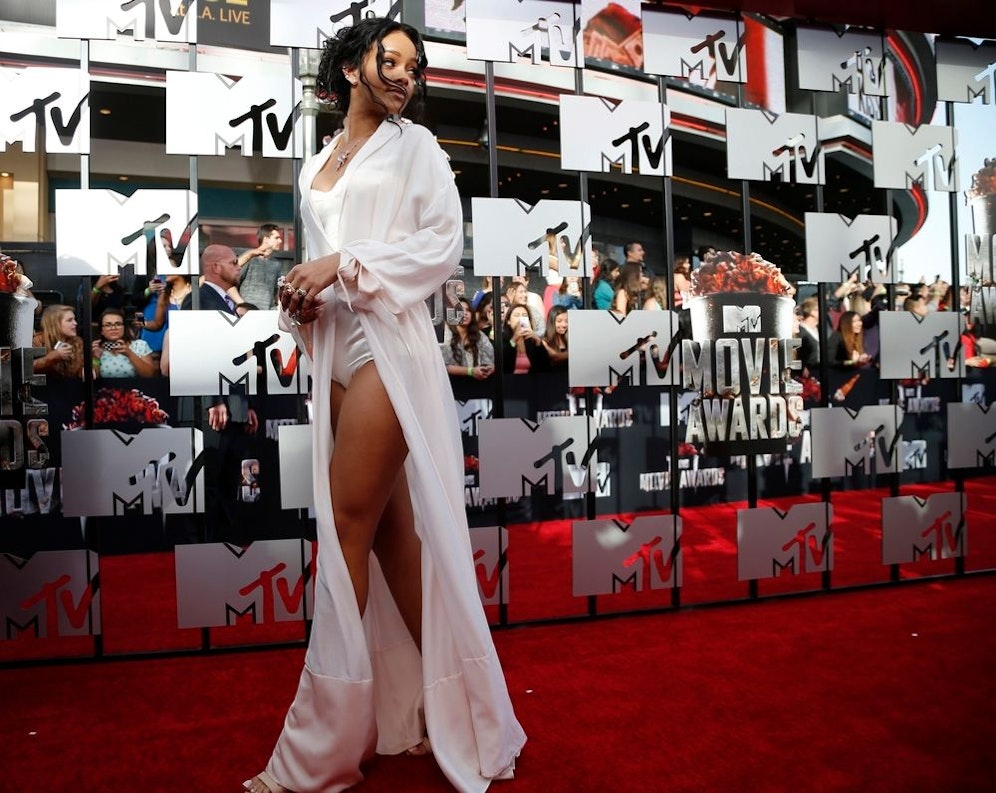 Rihanna sorgte bei der Verleihung der "MTV Movie Awards" für ordentlich Mode-Wirbel: Die Sängerin spazierte in einem ultraknappen Bustier-Jumpsuit aus elfenbeinfarbener Seide über den Red Carpet und zog so alle Blicke auf sich.