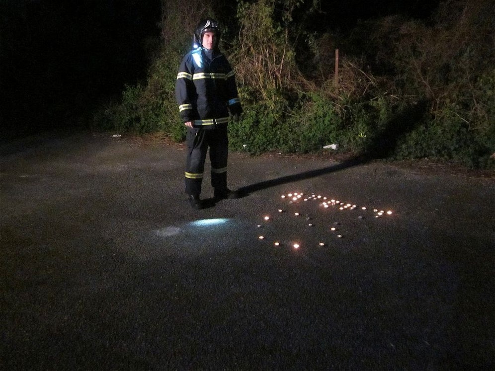 Als die Florianis anrückten fanden sie am Parkplatz zu ihrem Erstaunen 50 bis 60 brennende Teelichter, die ein großes Herz bildeten. Die Romantiker, die diese dort platziert hatten, waren von ihrer Liebe so geblendet, dass sie vergaßen, die Kerzen wieder auszulöschen.