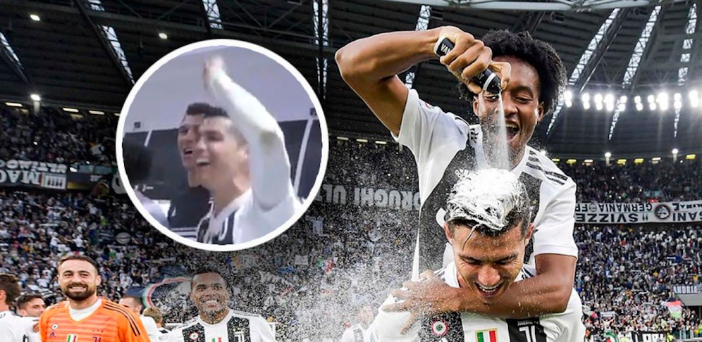 Der 34-jährige Portugiese feierte den sechsten Meistertitel im dritten Land. Eine ganz besondere "Überraschung" hatte Juan Cuadrado parat. Der Kolumbianer stürmte mit einem Freistoß-Spray bewaffnet auf den Portugiesen zu, sprang auf den 34-Jährigen und sprühte Ronaldo direkt ins frisch gestylte Haar.