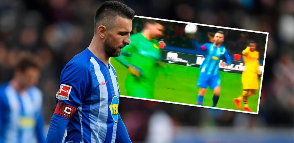 Hertha-Kicker Vedad Ibisevic hat sich in der Nachspielzeit einen Ausraster geleistet. Er schoss den BVB-Goalie ab und musste vorzeitig unter die Dusche.