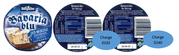 Die Bergader Privatkäserei GmbH ruft deswegen seinen Käse "Bavaria blu - Der Würzige (300 Gramm)" mit dem Mindesthaltbarkeitsdatum 29. August 2022 vorsorglich zurück. Der beliebte Weichkäse mit Blauschimmel wird u.a. bei Billa, Billa Plus oder Metro vertrieben.